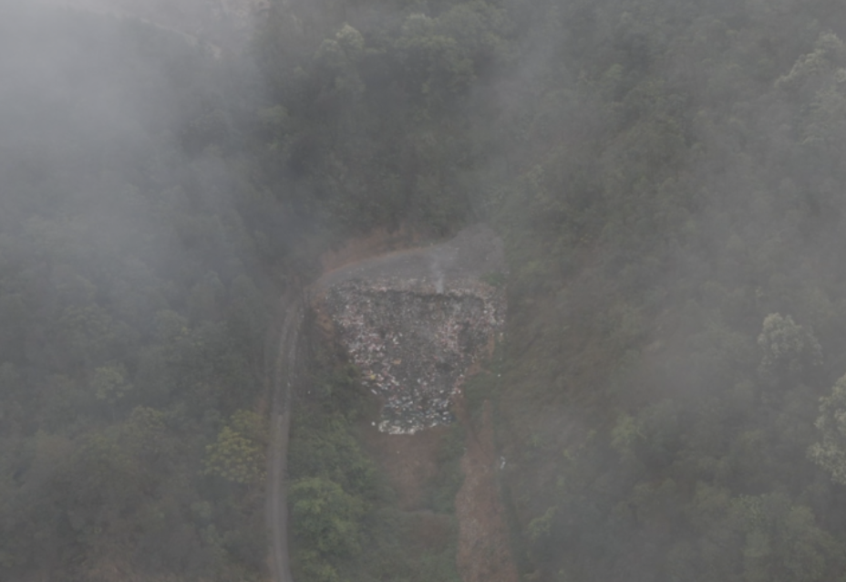 卖酒镇垃圾处理中心旁的山坡上堆放着许多垃圾。新华社记者 雷嘉兴 摄