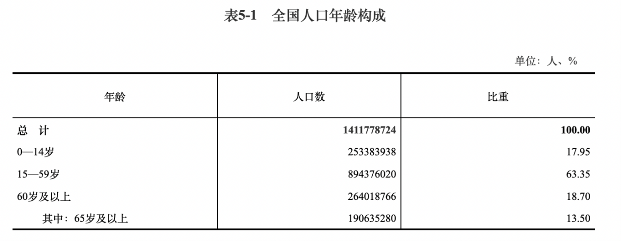 从年龄构成来看,0—14岁人口为25338万人,占17.95%;15—59岁人口为89438万人,占63.35%;60岁及以上人口为26402万人,占18.70%(其中,65岁及以上人口为19064万人,占13.50%)。与2010年相比,0—14岁、15—59岁、60岁及以上人口的比重分别上升1.35个百分点、下降6.79个百分点、上升5.44个百分点。我国少儿人口比重回升,生育政策调整取得了积极成效。同时,人口老龄化程度进一步加深,未来一段时期将持续面临人口长期均衡发展的压力。