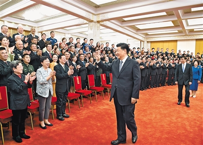 十一月五日,党和国家领导人习近平、王沪宁等在北京人民大会堂会见第八届全国道德模范及提名奖获得者。
