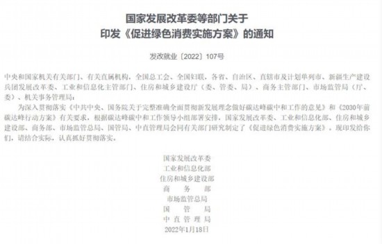 中新财经1月22日电(谢艺观 左雨晴)近日,国家发改委等七部门印发《促进绿色消费实施方案》(以下简称《方案》),倡导合理、适度购买衣物,探索实行缓解城市交通拥堵停车费政策……条条跟你的消费、钱袋子有关!