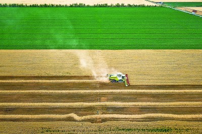2020年,我这块农田被建成了旱能浇、涝能排的高标准示范田。如今,农田犁地、播种、除草等都采用了智慧化监测、机械化操作,可省人力了。今年,小麦亩产达到了1400斤。