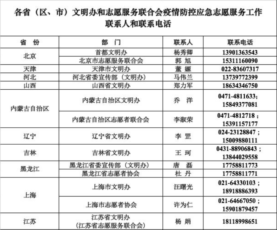 附:各省(区、市)文明办、志愿服务联合会疫情防控应急志愿服务工作联系人和联系电话