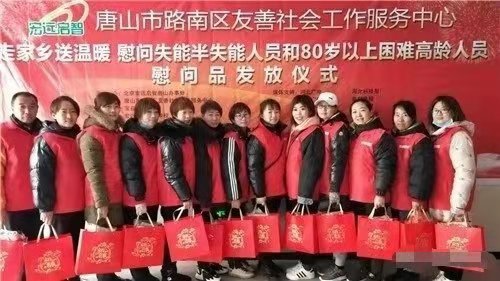 此次活动慰问对象是唐山市路南区的121名失能与半失能困难老人和80岁以上的困难高龄老人,为他们发放米、面、油和棉马甲等生活用品。