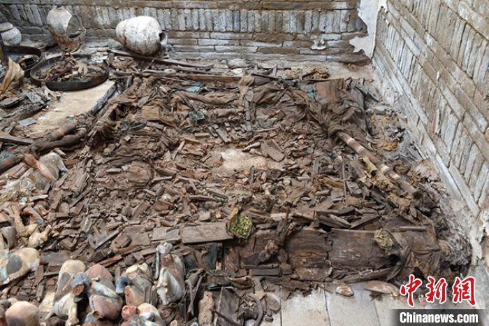 墓葬为单室砖室墓,由封土、墓道及壁龛、封门、照墙、甬道和墓室等组成。甬道及墓室内随葬有彩绘陶、漆木、石、铜、铁、金银器及革制和丝麻织品等,共计220余件组。据了解,目前,墓葬发掘工作仍在进行,棺木将整体打包提取至实验室进行清理,棺内情况尚不明。