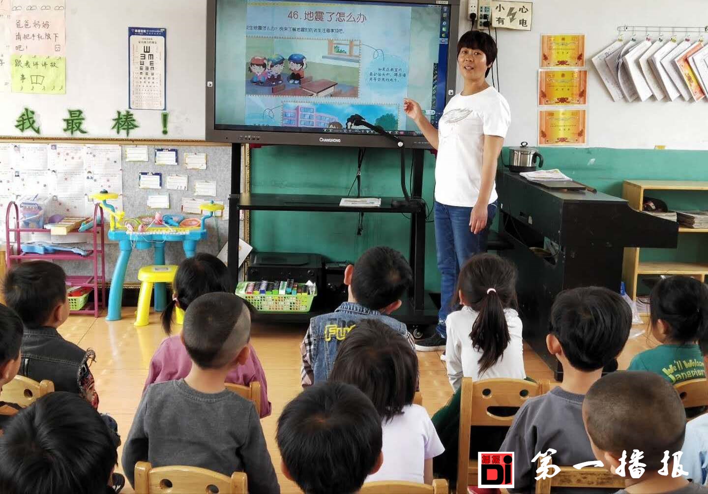 地震具有突发性、破坏性和难以预测性,那么地震来了该怎么办呢?演练结束后老师结合图片、动画,情景故事又给幼儿们上了一堂生动的“防灾减灾”安全教育课,并以此次活动为切入点对其它方面的安全事项进行了教育,教给幼儿自我保护的本领。