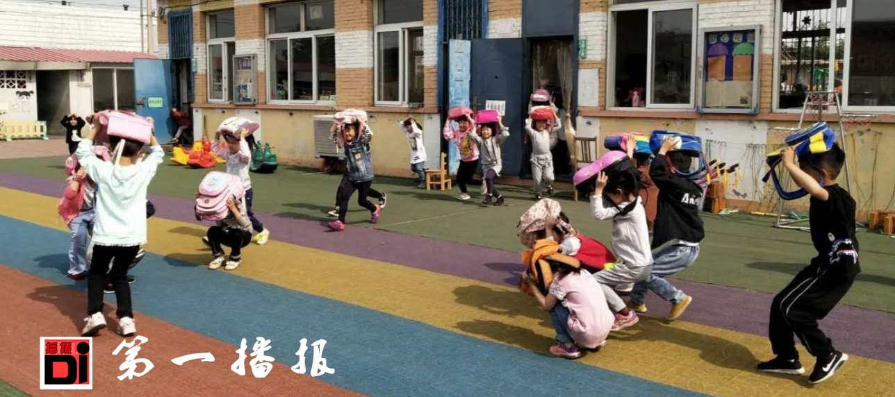 由于幼儿平时对紧急疏散的程序和路线非常熟悉,随着警报响起,孩子们立即双手抱头或头顶书包快速撤离了活动室,来到了校园的空旷处。从撤离活动室、老师清点人数、到报告结束,整个演练用时不过1分钟。