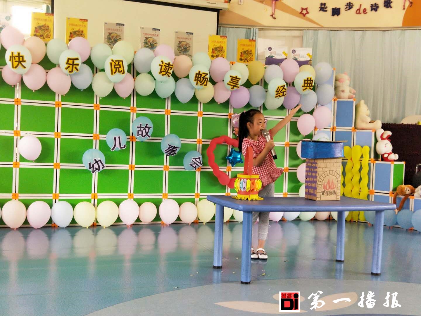 近日,该园举办主题为“快乐阅读,畅享经典”阅读节幼儿故事会活动,活动现场既富于童趣又充满书香味,小班幼儿与爸爸妈妈亲子分角色讲故事比赛,中、大班幼儿利用各种材料制作故事道具并配以洪亮的声音、优美的肢体动作参加比赛,现场的小听众们听得十分入迷。