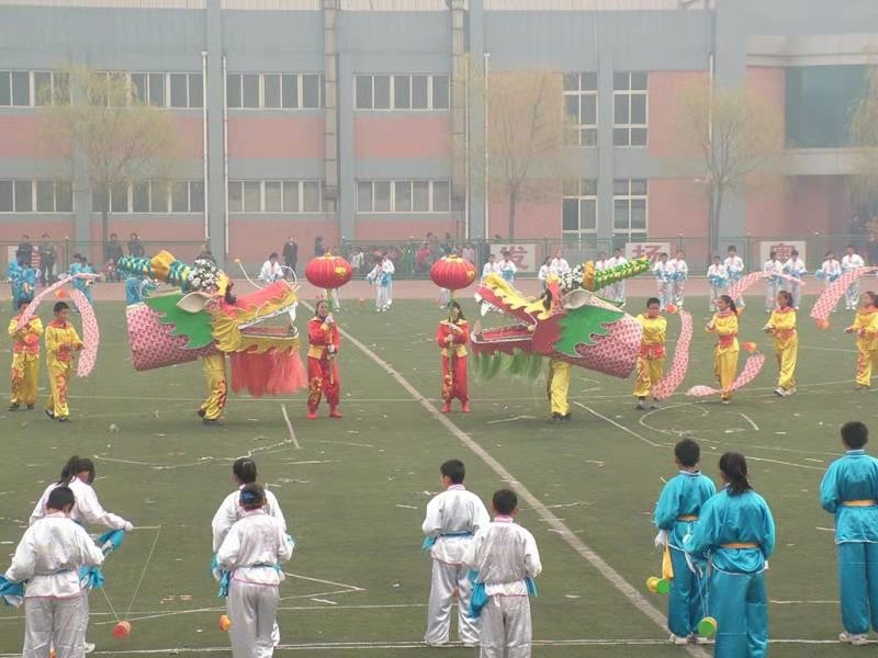 学校刚引进空竹时,确实遇到很多困难。校领导想办法,为了带动并指导师生练习抖空竹,学校先是邀请空竹民间艺人到校指导,后来又聘请唐山市空竹协会成员作为学校校外辅导员。孩子们更是不怕吃苦,最初,孩子们被空竹特殊的玩法和响亮的声音吸引,一到课间休息时间就聚在操场上练习空竹;后来,简单的花样已经不能满足孩子们的求知欲,学校就在民间老艺人的指导下开发出了一系列新的花样和技巧,空竹抖动时姿势多变,使绳索翻花,做出“过桥”、“对扔”、“串绕”“抢高”等高难度动作,并组建了表演队,开始尝试大型团体抖空竹表演,并且还将抖空竹和民间传统秧歌技巧踩高跷结合在一起,独创了高跷空竹表演,在此基础上,老师们还自制龙头、狮子等器物作为抖弄的道具进行表演。现在同学们大课间做的空竹操正是学校老师自编自创的,已经成为学校一道亮丽的风景线。正所谓“时有所学,日有寸进;永不言弃,终有所成”。