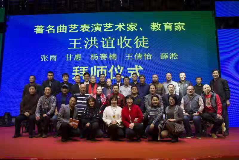 来自北京、天津、石家庄、山东等各地的曲艺界名人聚首唐山,参加收徒拜师仪式,对王洪谊师徒表示祝贺。唐山市曲艺爱好者张雨、甘惠、杨赛楠、王倩怡、薛淞,拜王洪谊先生为师,行拜师礼后,师徒互赠礼品,表示心意。担任引师、保师、代师的分别是著名笑星陈寒柏,著名曲艺表演艺术家、曲艺作家马云路,中国铁路文工团原曲艺杂技团团长、著名曲艺表演艺术家刘际。
