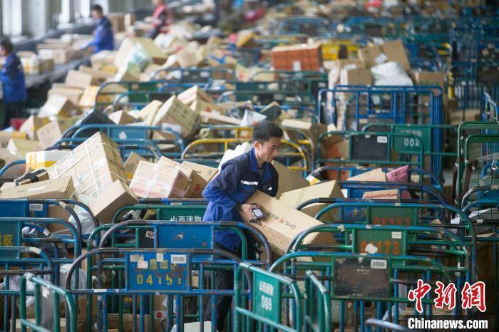 资料图:山西省邮政公司太原邮件处理中心正在处理快递。 张云 摄