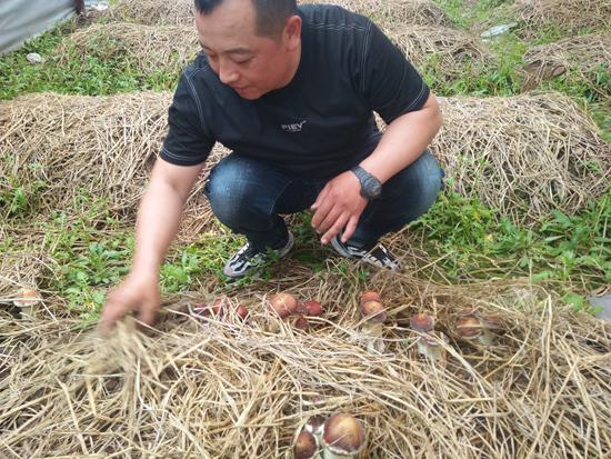 将玉米秸秆、玉米芯儿、稻壳、废弃的旧菌棒搅碎,加上特有的菌种埋在地下,经历60天的洒水光照,深红色间杂着小白点的“小雨伞”纷纷破土而出,成熟后的赤松茸会被运往全国各地。这是辽宁省抚顺市红石村党支部书记李根的榆红家庭农场里的景象。做村书记15年来,村里的贫困户全部实现脱贫。