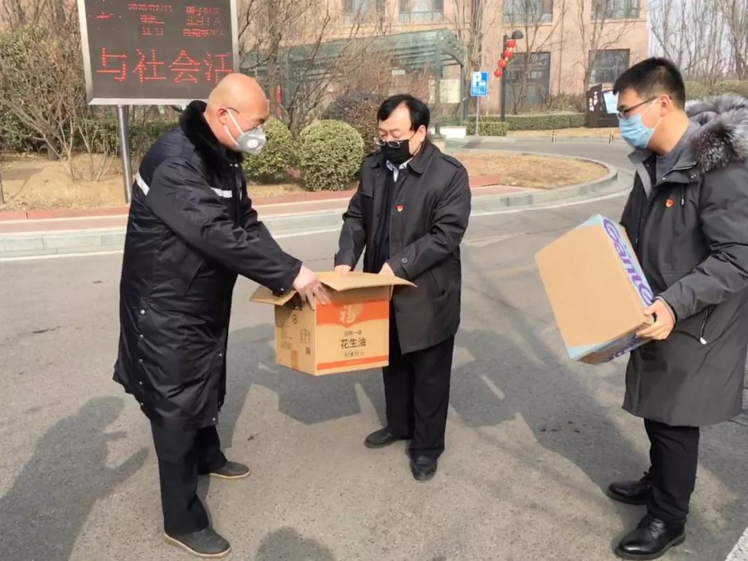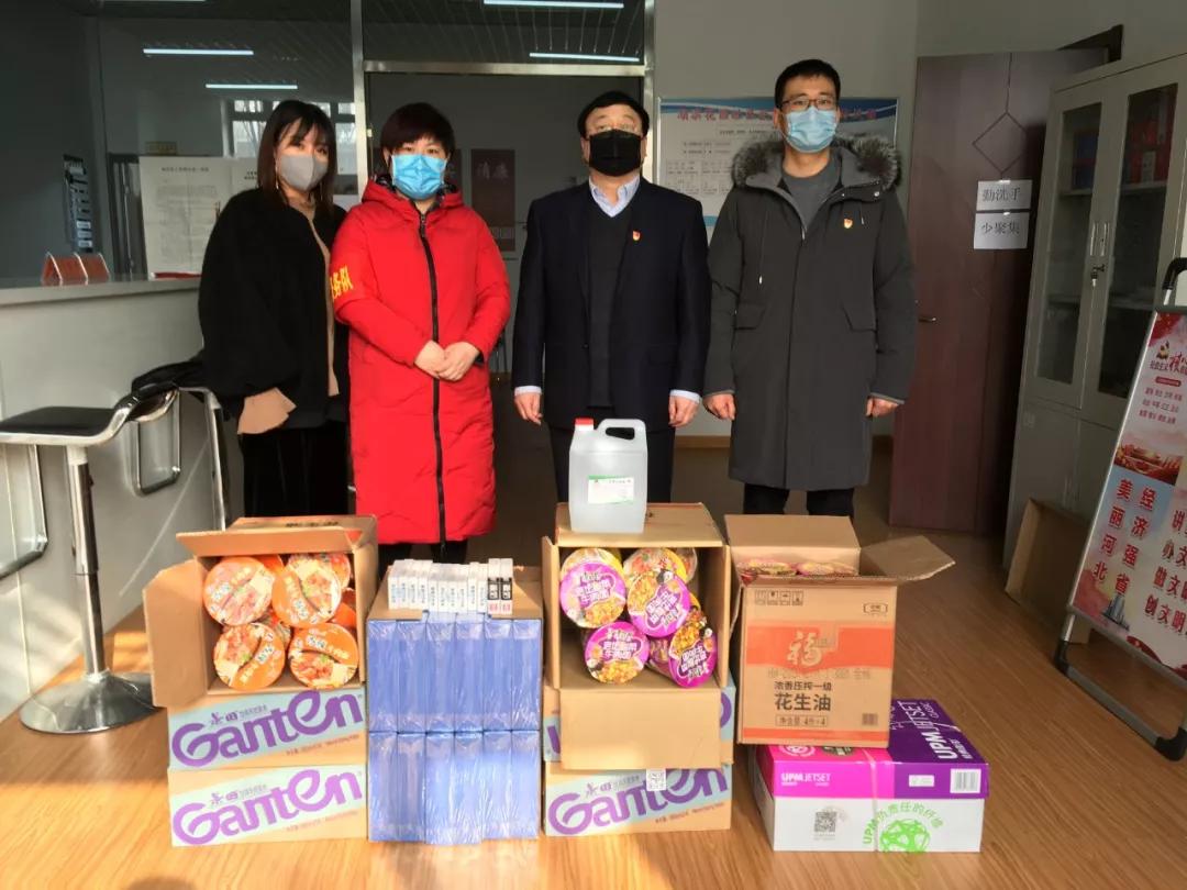 唐山市行政审批局在注重精准服务防疫生产企业的同时也十分关心“双报到”联系社区疫情防控工作,主动与路南区湖滨花园社区党组织联系对接,扎实开展“双报到”工作,积极为社区提供必要人力、物力支持,解决防控工作实际问题。2020年2月11日,审批局机关党委组织党员代表为社区提供A4纸、塑料档案盒、笔、酒精等物品用于建档立卡和消毒杀毒,并购买矿泉水、藿香正气水、方便面等慰问品,对社区一线工作人员进行了慰问,支持社区抗击疫情。