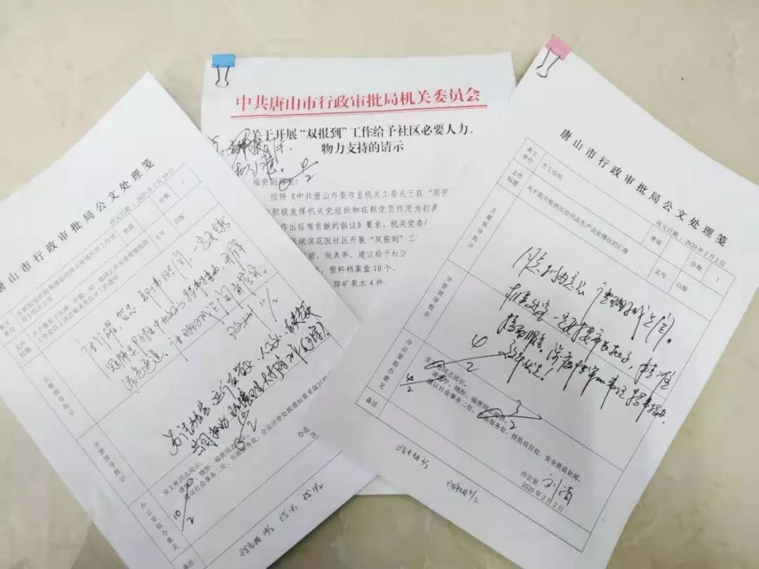 为积极响应国家、省委、市委疫情防控号召,切实支持唐山新型冠状病毒的防控工作,唐山市行政审批局组织党员开展好社区、住地“双报到”活动,充分发挥机关党组织战斗堡垒作用和党员先锋模范作用,在疫情防控阻击战中走在前、做表率。