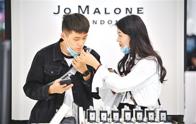 “95后”“00后”正踏在消费的潮头自2020年7月1日免税新政实施至12月31日,海南离岛免税店日均销售额超1.2亿元,同比增长2倍多。图为消费者在海口日月广场免税店选购香水。