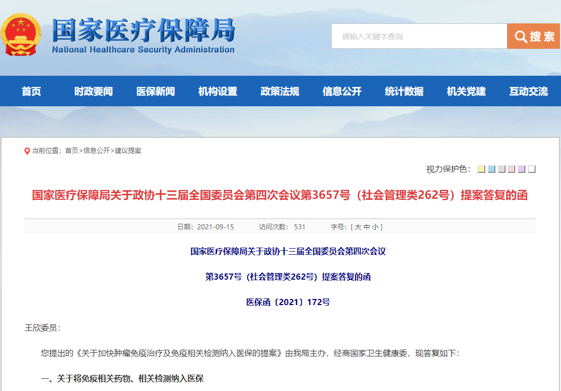 部分免疫药物通过谈判纳入医保 部分地区将部分免疫检测项目纳入医保