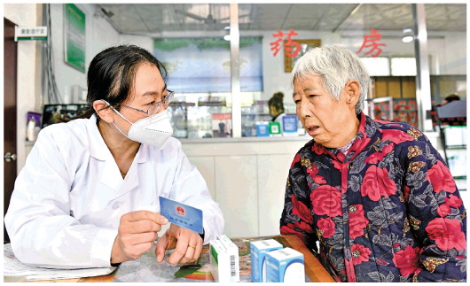 2020年11月11日,在山东省潍坊市寒亭区寒亭街道东院社区卫生室,医生王红霞为村民介绍医保服务下沉政策。 新华社记者郭绪雷摄