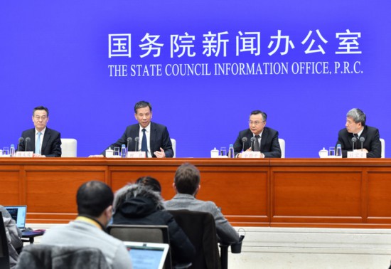 2月22日,财政部部长刘昆、财政部副部长余蔚平、财政部副部长许宏才出席国新办新闻发布会。新华社记者李鑫摄
