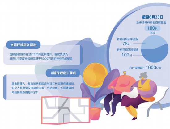 Wind数据显示,截至6月23日,全市场共有养老目标基金180只,其中养老目标日期基金78只,养老目标风险基金102只,合计规模超过1000亿元。