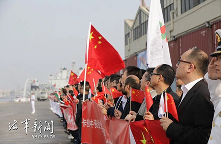 使馆、中资机构和华人华侨代表在码头迎接编队。