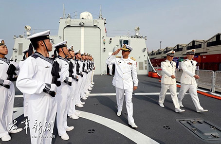 联演巴方总导演、联合指挥部指挥员扎法尔·伊克巴尔准将登临银川舰并检阅仪仗队。