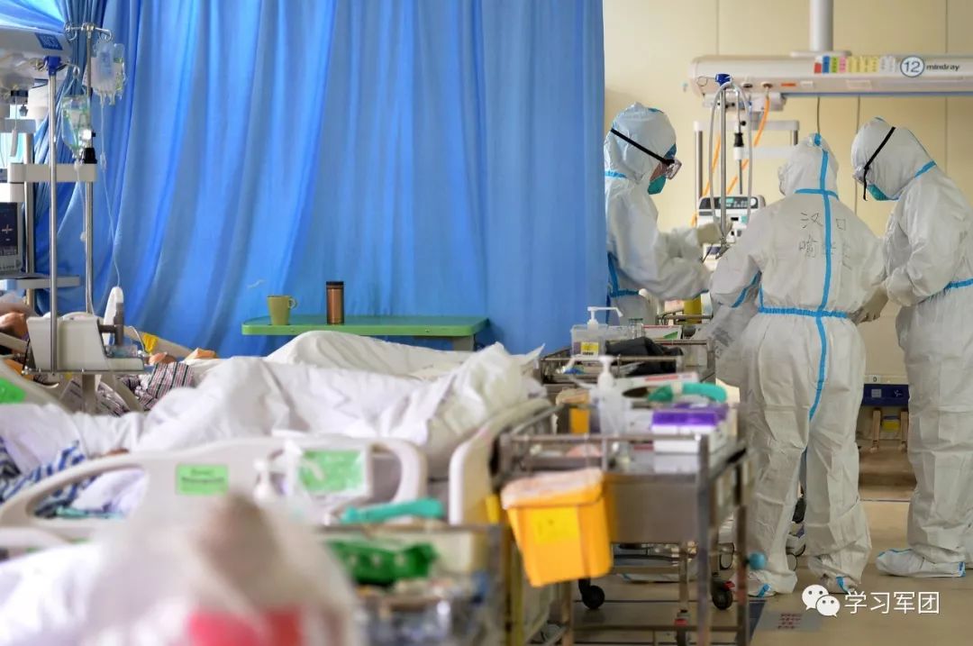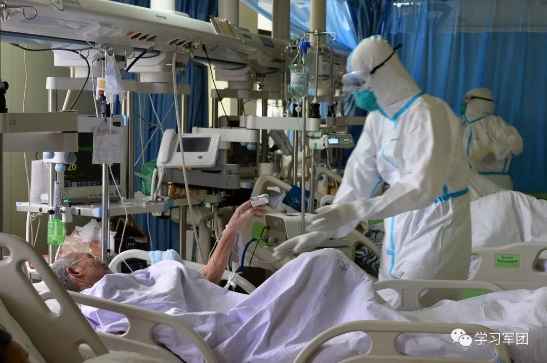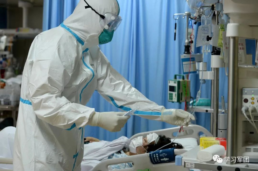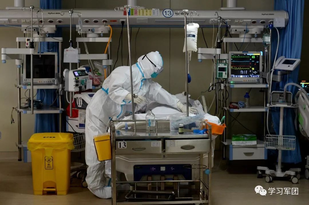 1月27日上午,海军军医大学医疗队医护人员在汉口医院重症监护室对新型冠状病毒感染的肺炎患者进行救治。医护人员加强巡视,观察输液滴数。解放军报记者范显海摄