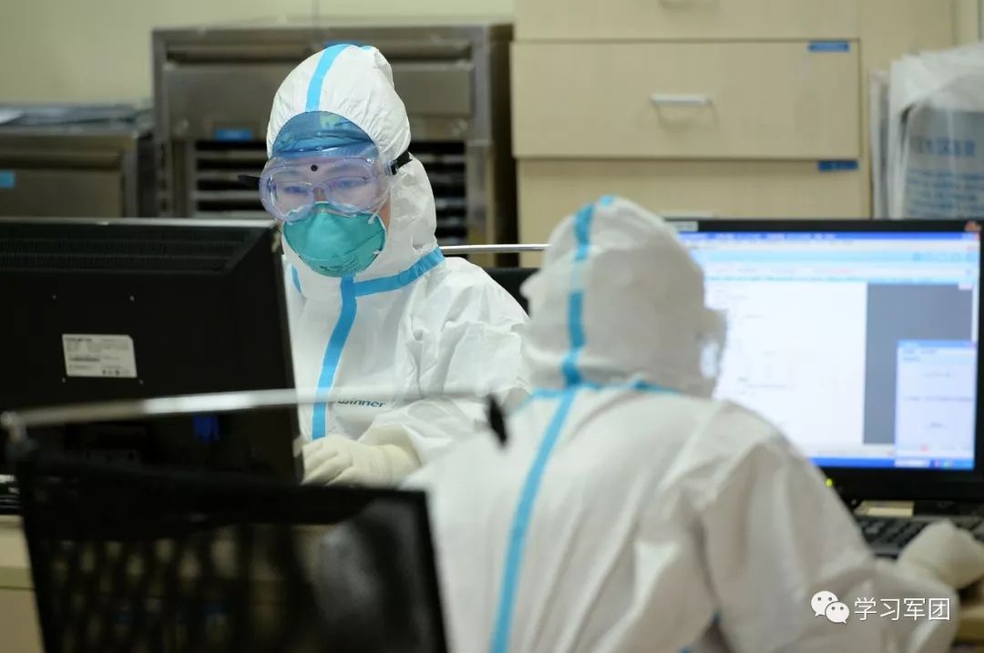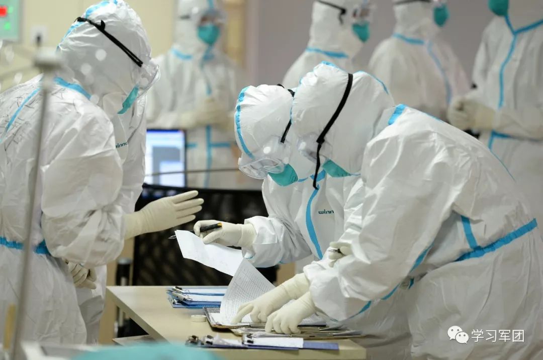 1月27日上午,海军军医大学医疗队医护人员在汉口医院重症监护室对新型冠状病毒感染的肺炎患者进行救治。医护人员查看检查结果,评估患者病情。解放军报记者范显海摄