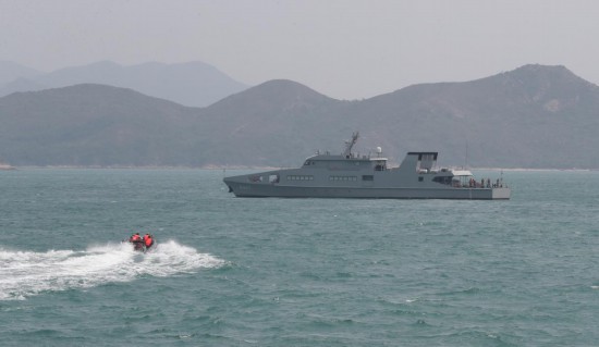 对“可疑船只”进行拦截查证。孟垂云 摄