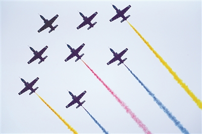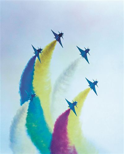 “八一”飞行表演队进行特技飞行表演。栾铖摄