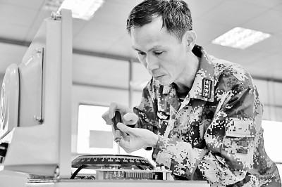 还有不到3个小时,军舰就要出海了,但声纳还没修好,杨国忠心急如焚。最终,他查出是一块电路板“掉链子”了。此时,杨国忠参加工作还不到一年,但他没有丝毫迟疑,冲到另一艘军舰上,叫醒熟睡的舰长,张口就要拆借声纳电路板。那个舰长知道事出紧急,没有责怪眼前一脸油污、喘着粗气的年轻人,只是告诉杨国忠必须得支队长同意才能拆。于是,杨国忠扭头跨上自行车,又消失在黑夜之中……