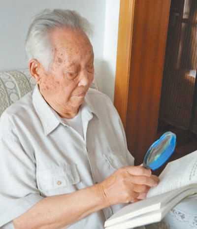 北京受勋归来,“七一勋章”获得者、辽宁省军区大连第十六离职干部休养所离休干部郭瑞祥——这位101岁、党龄84年的老党员一如往常,每天最重要的事便是学习习近平总书记的重要讲话精神,了解国际国内形势。“不学习怎么能跟得上?”书桌上3个放大镜都摔破了边,用胶带缠着“还能用”。