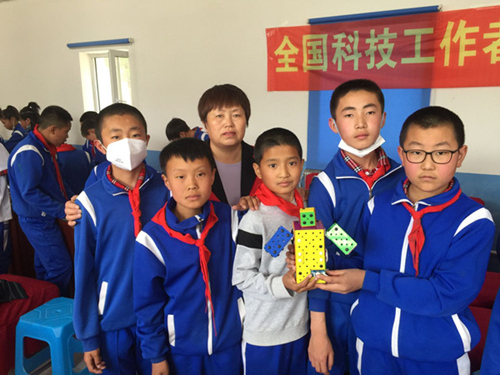 2022年全国科技工作者日,萨日娜与学生们参加志愿服务活动,走进农村牧区学校科技志愿活动首站之扎鲁特旗科技馆巡展。(受访者供图)