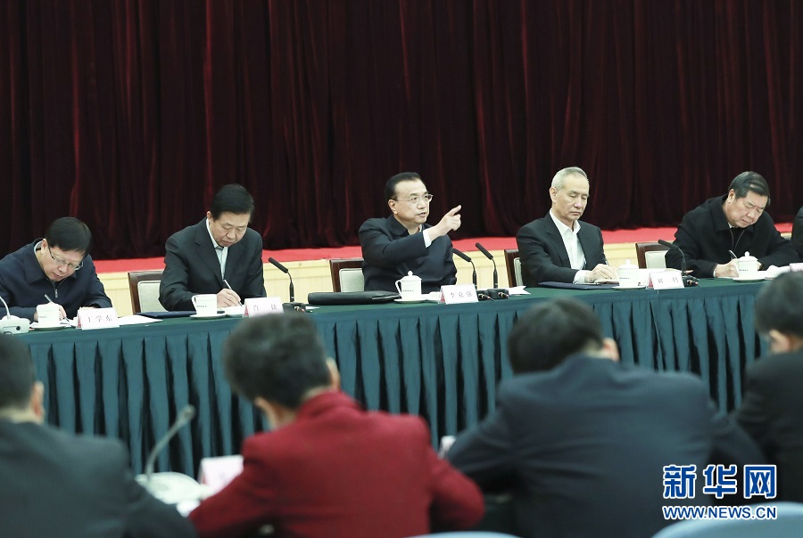 座谈会上,人民银行、银保监会主要负责人作了汇报。李克强充分肯定金融系统广大员工贯彻党中央、国务院部署所做的卓有成效工作。他说,去年以来,面对复杂严峻形势,在以习近平同志为核心的党中央坚强领导下,我们坚持实施稳健的货币政策,不搞“大水漫灌”,运用定向降准等多种工具,适时预调微调,尤其是出台一系列针对性措施,着力解决小微企业融资难融资贵等问题,强监管、防风险取得阶段性成效,宏观杠杆率总体趋稳。今年经济发展面临新的下行压力和诸多挑战。要坚持以习近平新时代中国特色社会主义思想为指导,按照中央经济工作会议部署,坚持稳中求进工作总基调,保持宏观政策的连续性稳定性,注重加强宏观政策逆周期调节,实行普惠性减税和结构性减税,适时运用好全面降准、定向降准和再贷款、再贴现等政策工具,加大对实体经济特别是民营、小微企业的支持,为保持经济平稳健康发展提供支撑。