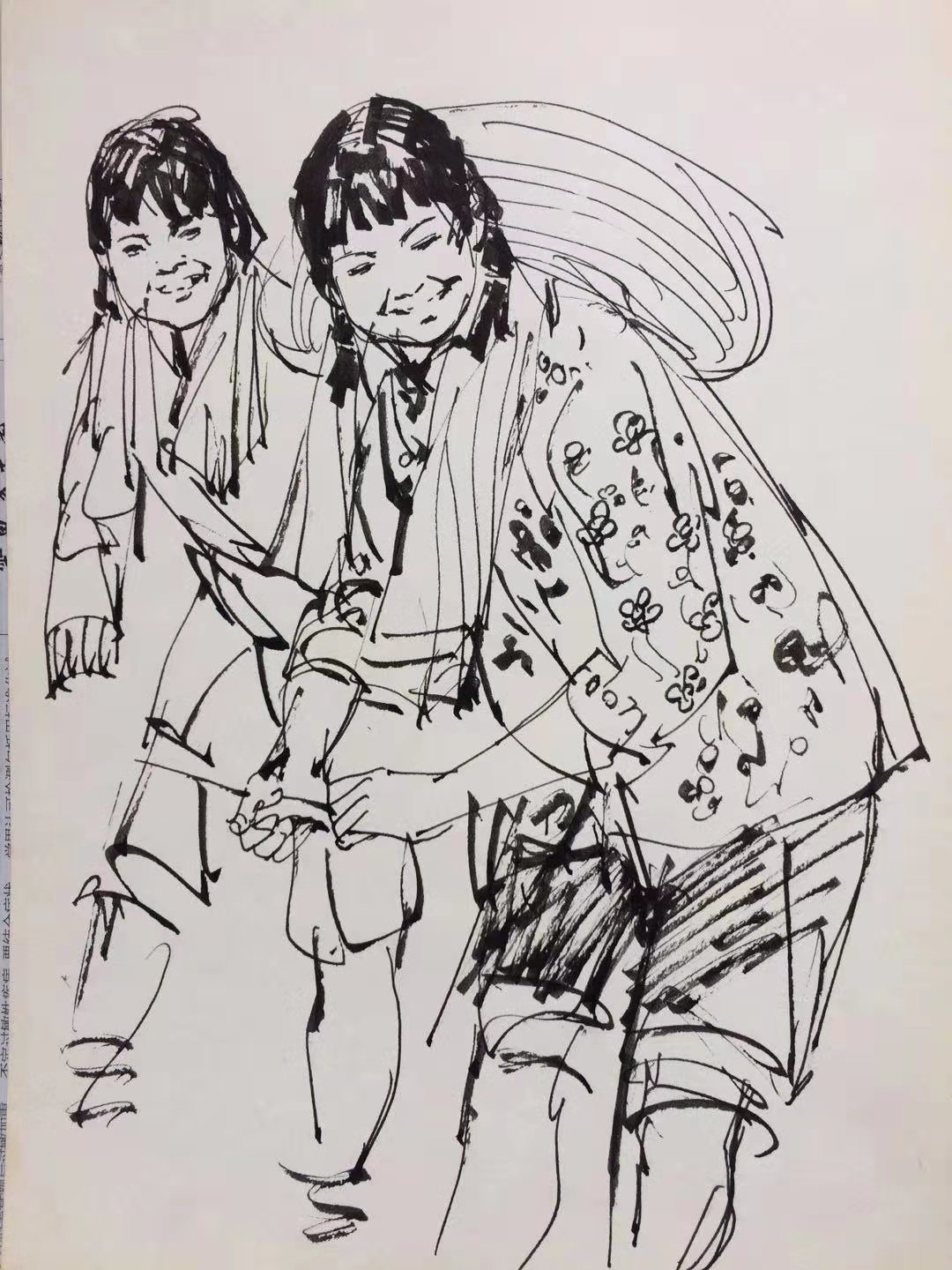 作者上世纪七十年代插队到栾城县东尹村,颇具绘画潜质,擅长人物速写。那个年代值得回忆的点点滴滴,重新让我们感受到了那个充满热血的青葱时光。一切一切都倍感亲切和珍贵。这些速写画稿,线条讲究、构图有致、表情生动,十分难得,(图一~图四,画的是当年知青生产、生活、友谊情景。图五是知青房东大娘,图六是村小学的学生)