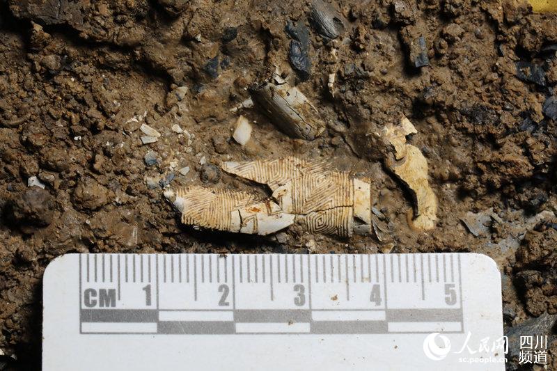5号坑象牙雕刻残片。四川省文物考古研究院供图