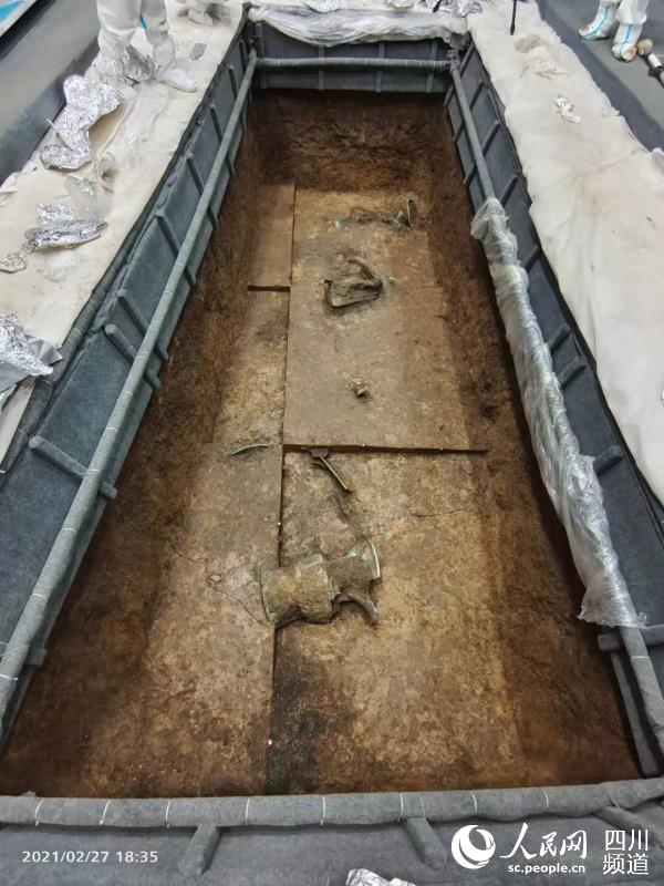 3号坑器物露头。四川省文物考古研究院供图