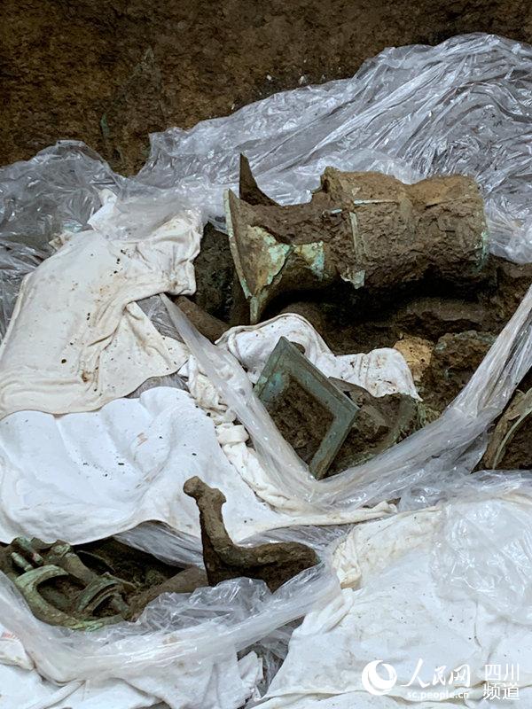 图为新发现的青铜器。人民网 王波摄