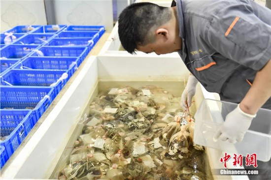2019年8月,“南海Ⅰ号”考古队工作人员对沉船的出水文物进行脱盐处理。中新社记者 陈骥旻 摄