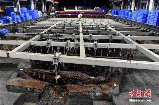 2019年8月拍摄的安置在广东海上丝绸之路博物馆内的“南海I号”。中新社记者 陈骥旻 摄